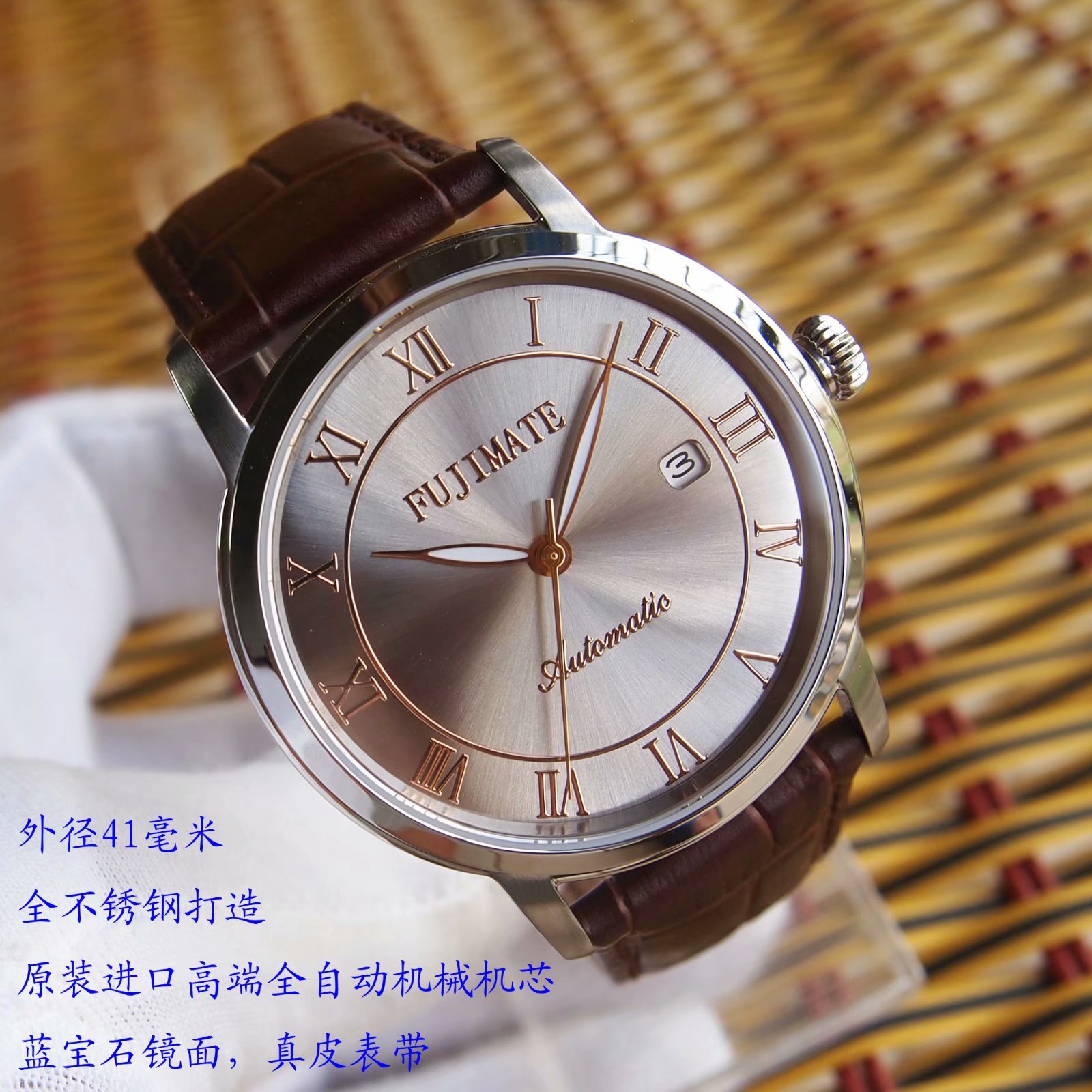 M6882K16不锈钢原色面镶金色罗马字全自动机械男表