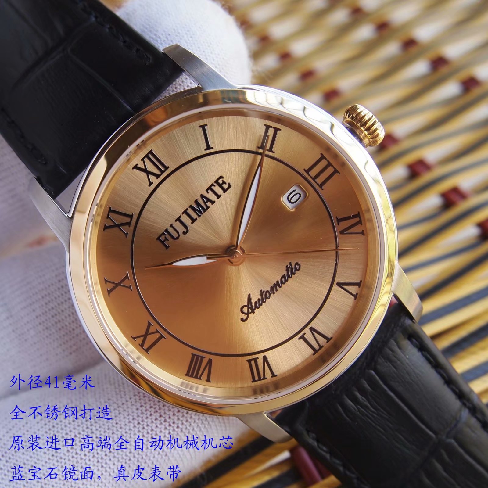 富士M6882K8全不锈钢单历底镂空全自动机械男表