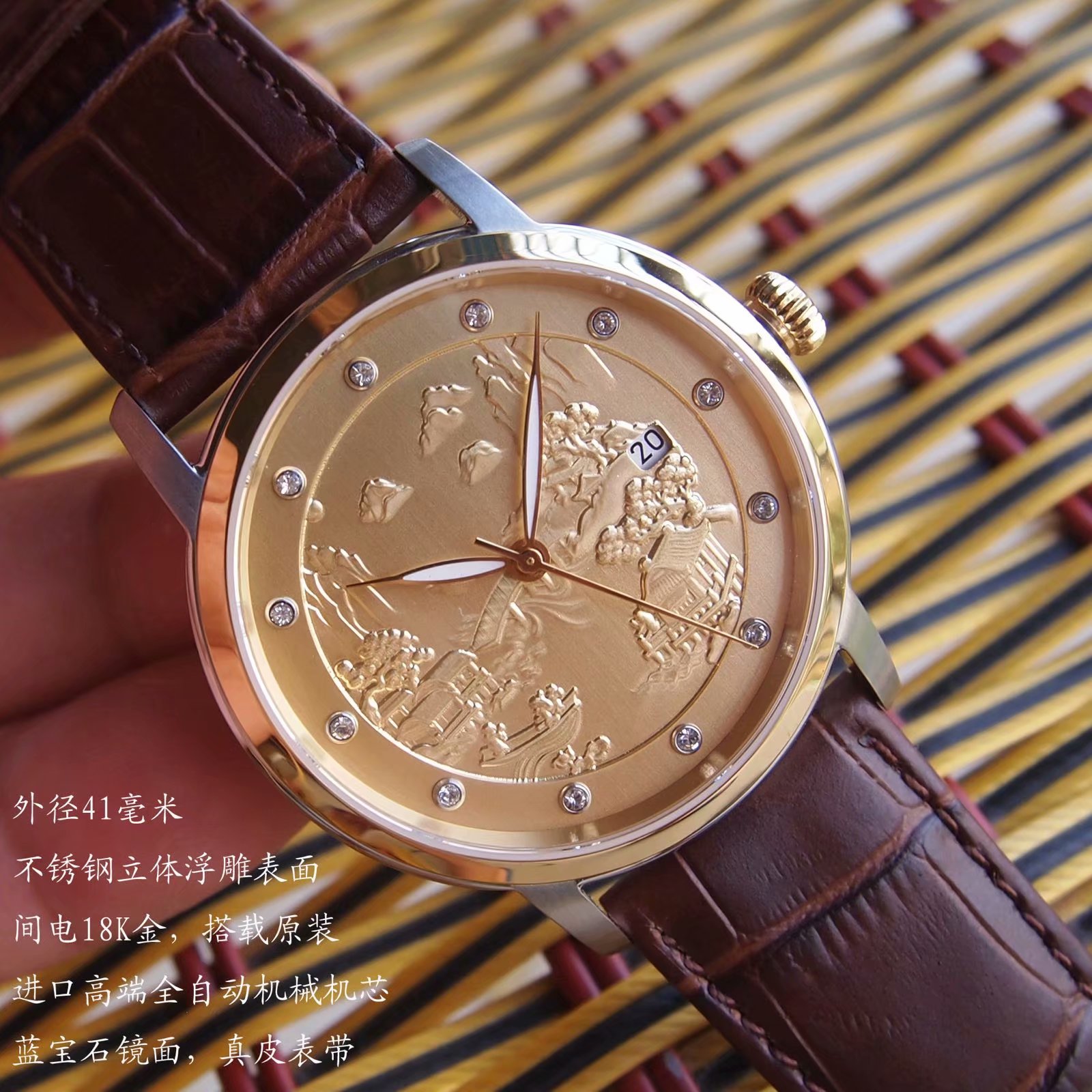 M6882K10山水画立体浮雕个性订制全自动机械男表