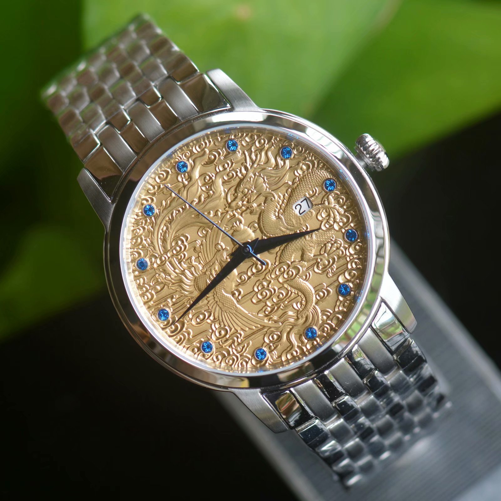M6882K27不锈钢立体浮雕龙凤呈祥个性订制全自动机械男表(2892机芯)
